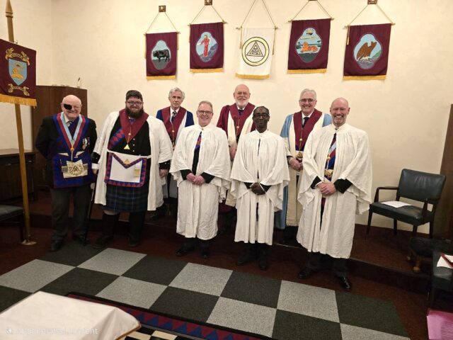 With two exaltees Brian Bates and Sam Moore an excellent ceremony was conducted by all three Principals with contributions from other Chapter members and support from visitors.