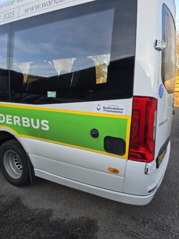 Clive then showed them the latest bus and was pleased to note that the “Supported by Bedfordshire Freemasons” branding was prominently displayed on the new vehicle.