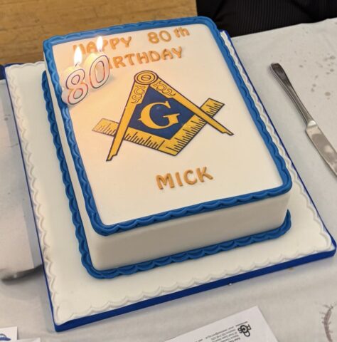 Wrest Park Lodge celebrated the 80th birthday of their longest serving member on Wednesday March 12th when Mick Barton was treated to a surprise birthday cake at the festive board.