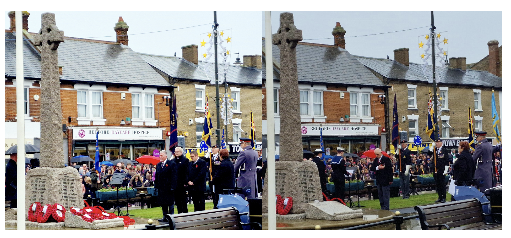 The Provincial Grand Master, Tony Henderson, led those Brothers who had gathered with family & friends on the Embankment to pay respect at the Bedford War Memorial, as seen in the main picture above