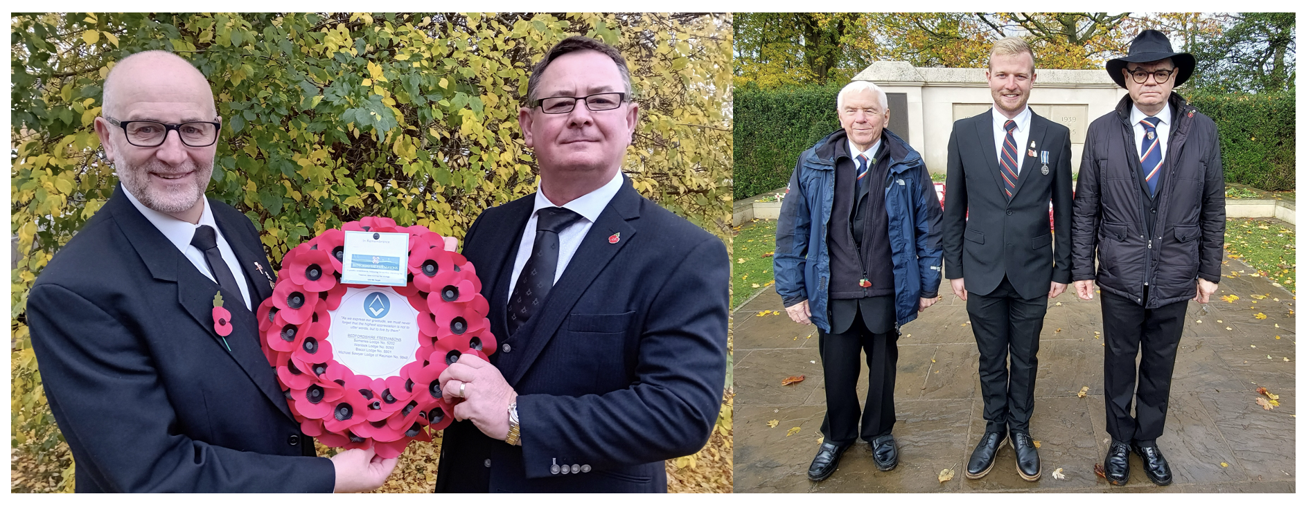 In the south of the Province, Mike Freeley and Martin Hannam, both of Someries Lodge, took part in the Luton Remembrance Day Parade, laying a Wreath on behalf of the Luton Lodges.